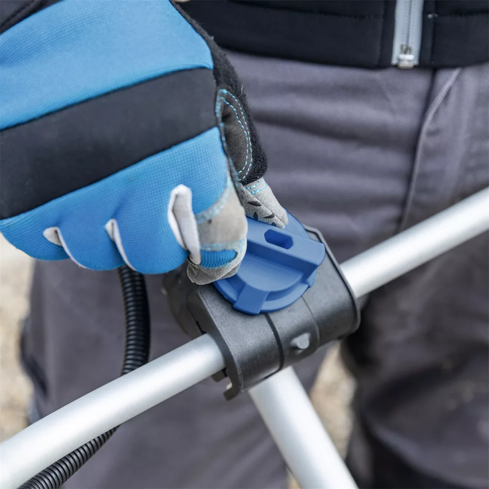 A munkavégzés kényelmének növelése érdekében a gép állítható, csúszásgátló felületű kormánnyal és rezgéscsillapító rendszerrel van felszerelve. A három sebességfokozatnak (4000, 5000 és 6200 ford./perc) köszönhetően könnyedén hozzáigazíthatja a teljesítményt a konkrét munkaigényhez. A gép szerszám nélkül össze- és szétszerelhető, ami nagyban megkönnyíti a szállítást vagy a tárolást.