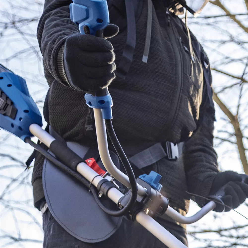 A készülék 2 x 20 V-os akkuval működik (összesen 40 V), ami elegendő teljesítményt biztosít a zordabb terepen végzett igényes feladatokhoz is. A damilfej munkaszélessége 380 mm, a vágókésé pedig 255 mm, így gyepet, magas füvet vagy sűrű aljnövényzetet vágására egyaránt alkalmas. A prémium minőségű háromfogú kést, a nehéz körülmények között is hatékony vágásra tervezték, míg a damilfej Tap’n’Go funkciója lehetővé teszi az 1,6 mm-es damil egyszerű félautomata adagolását.