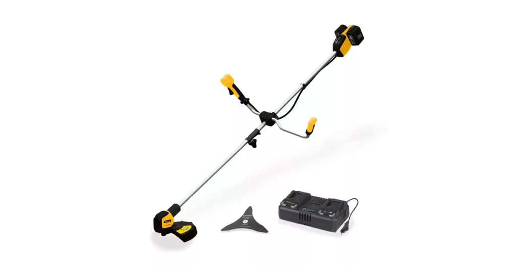 A gép 2 az 1-ben funkcióval rendelkezik, így a munka nehézségétől függően használható klasszikus damilfejjel vagy háromfogú kaszakéssel. A két 20 V-os akkumulátor együttesen 40 V-os teljesítményt biztosít, sokkal kedvezőbb áron. Egy töltéssel a működési idő körülbelül 30 perc, a terheléstől függően, és a damil adagolása automatikusan történik.