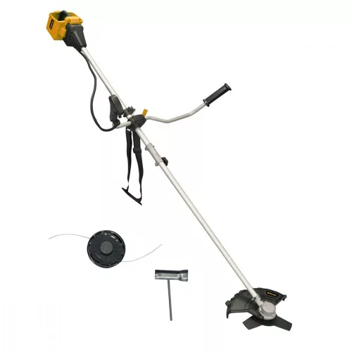 Az "2 az 1-ben" funkció lehetővé teszi a készülék klasszikus damilfejjel vagy háromfogú kaszakéssel való használatát a körülmények nehézségétől függően. Két darab 20 V-os akkumulátor egy 40 V-os gép teljesítményét biztosítja, ráadásul sokkal alacsonyabb áron. A működési idő egy töltéssel kb. 30 perc (a terheléstől függően változhat), automatikus damiladagolással. A könnyű és erős vezetőszár alumíniumötvözetből készült, míg a kerékpárfogantyú állítható és kényelmes fogást biztosít.