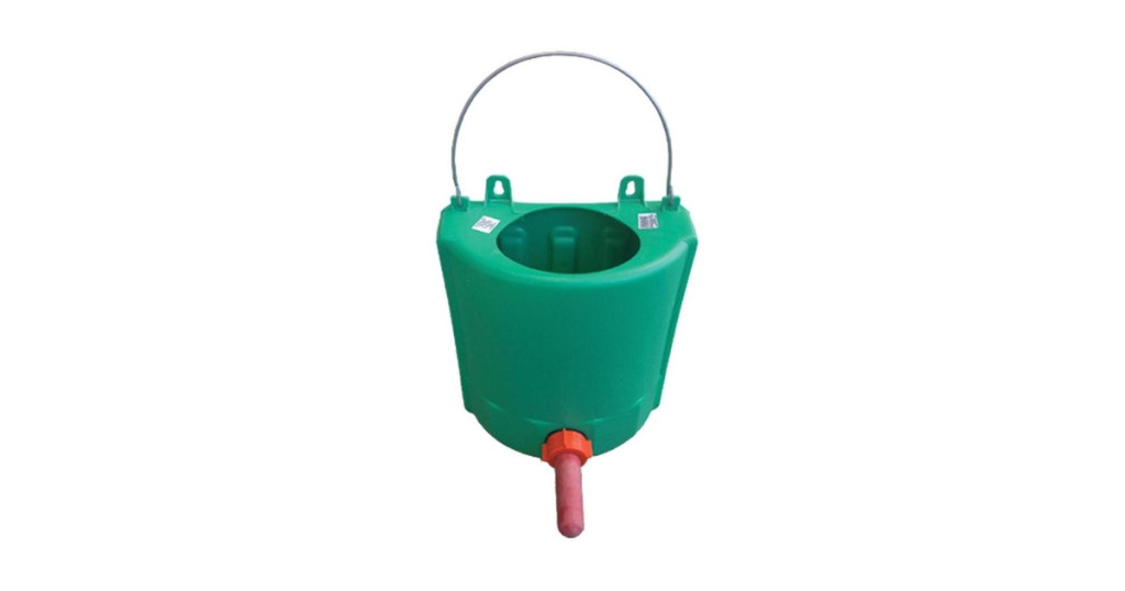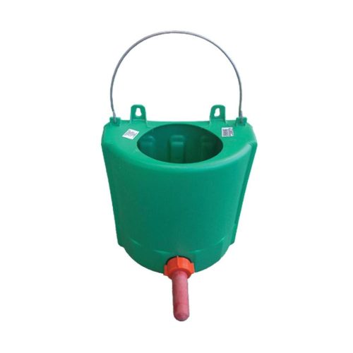 Felakasztható, vagy falra rögzíthető műanyag állatitató. Egy hozzáférésű vödör cserélhető cumival.