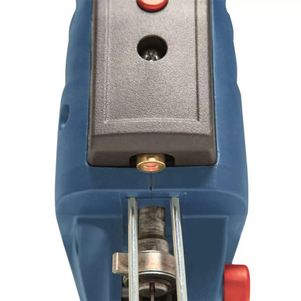 A könnyű vezethetőség érdekében lézer vezetővel is rendelkezik. A minőségi talplemez könnyen beállítható gérvágásra, akár 45°-ig. A gyorsbefogónak köszönhetően a fűrészlap cseréje is nagyon egyszerű. A markolat kényelmes fogást biztosító csúszásgátló felülettel van ellátva. A készülék porelszívó adapterrel is rendelkezik a pormentes munkához.