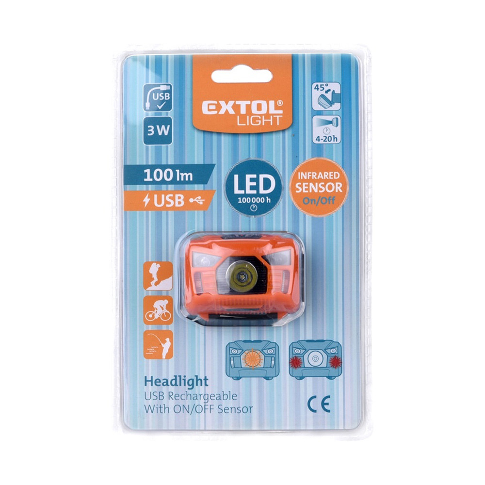 LED fejlámpa, 3 W, CREE XPL, 100 Lumen, IR szenzor, tölthető akkuval, 3 funkció, fehér+piros fény