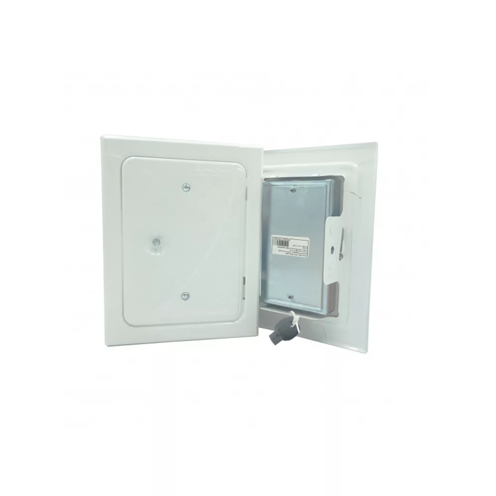 Egyszeres záródású, hőszigetelt, fehér acél kéménytisztító-, ellenőrző ajtó