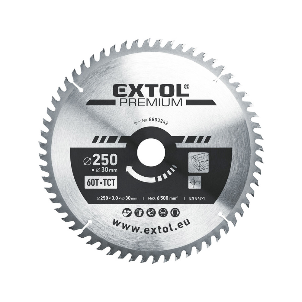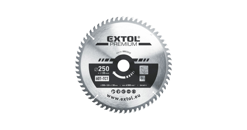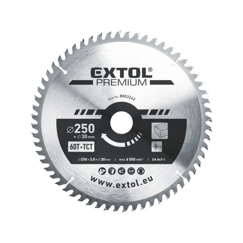 Keményfémlapkás körfűrészlap, 250x2,2x30 mm, 60T Extol Premium