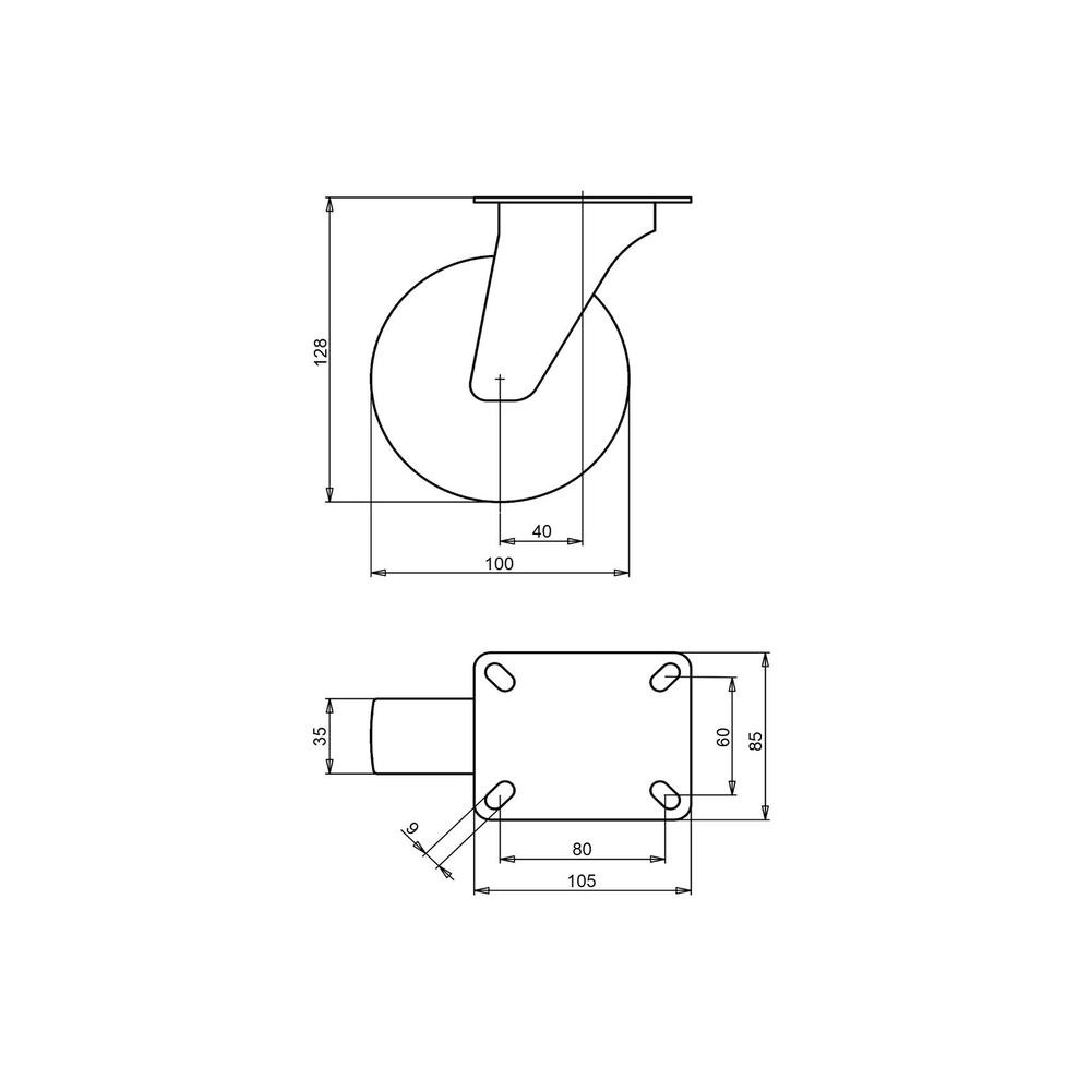 Kerék önbeálló PP tűgörgő 100 fehér 32393