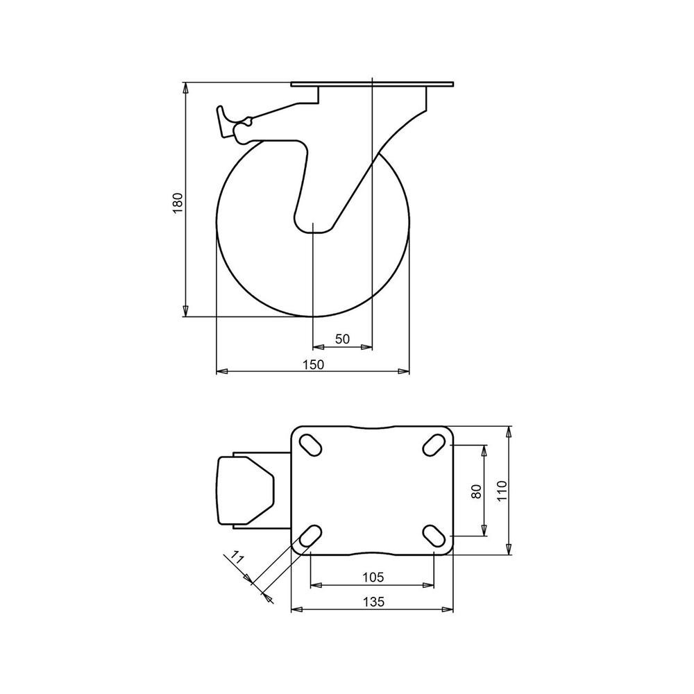 Kerék önbeálló talpas műanyag felnis fékezhető 150 31213 HELIO-hoz