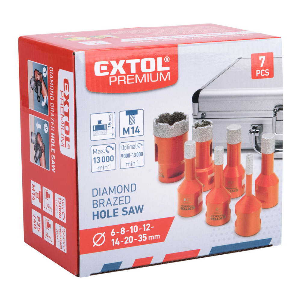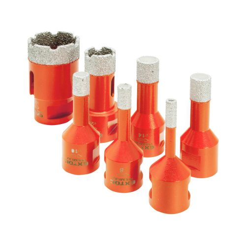 Extol Premium körkivágó csempére 7db-os készlet, gyémánt vágóél, M14 befogás, méretek: 6-8-10-12-14-20-35 mm.