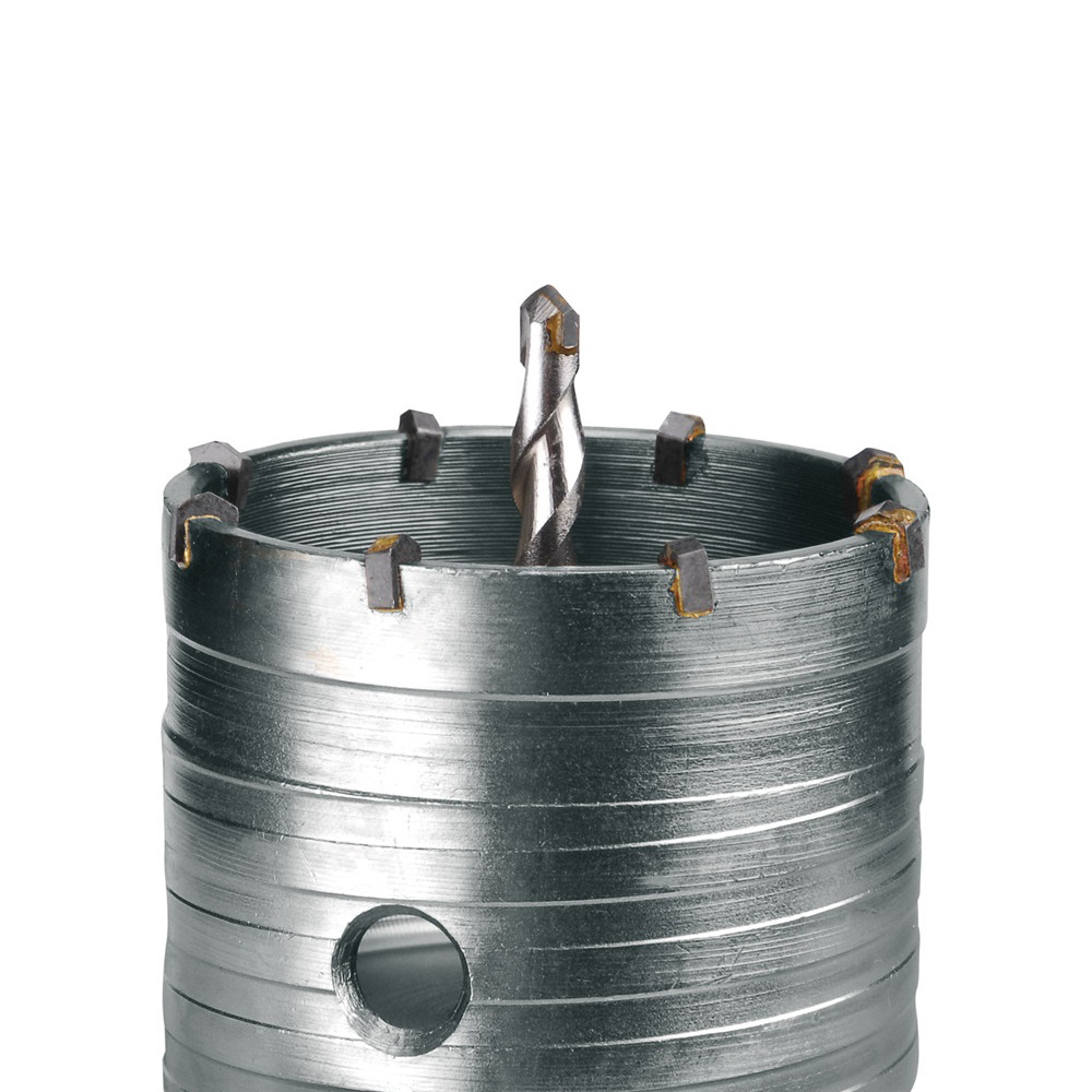 A karbid csúcs lehetővé teszi a fúrófej könnyű behatolását az anyagba. M16×100mm hosszú szár. Téglába puhább anyagú falakba ajánljuk.SDS Plus tokmányú fúrógépekbe lehet befogni. A falbasüllyeszthető műanyag villamos dobozok helyének kifúrására.