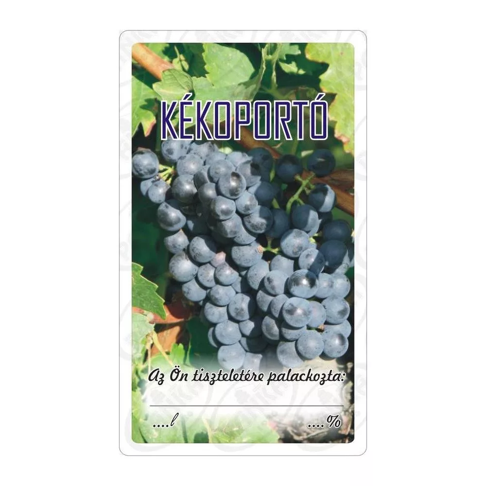 Dekoratív matrica boros üvegre, amely egyedi megjelenést kölcsönöz minden házi készítésű vagy ajándékba szánt bornak.