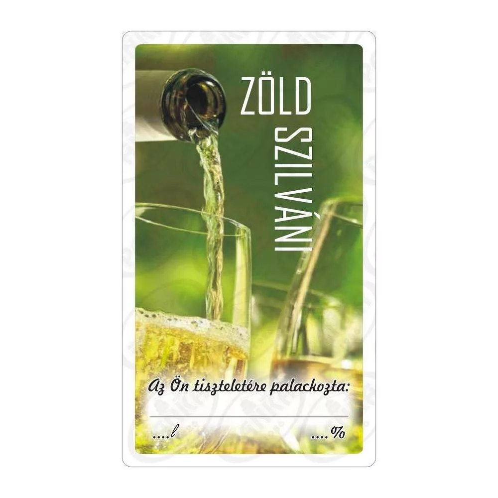 Dekoratív matrica boros üvegre, amely egyedi megjelenést kölcsönöz minden házi készítésű vagy ajándékba szánt bornak.