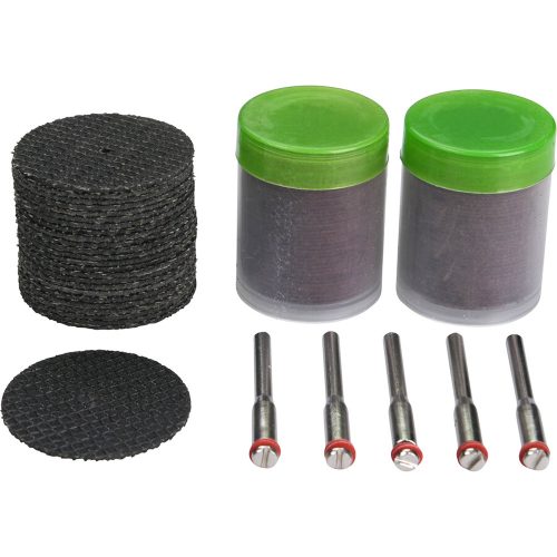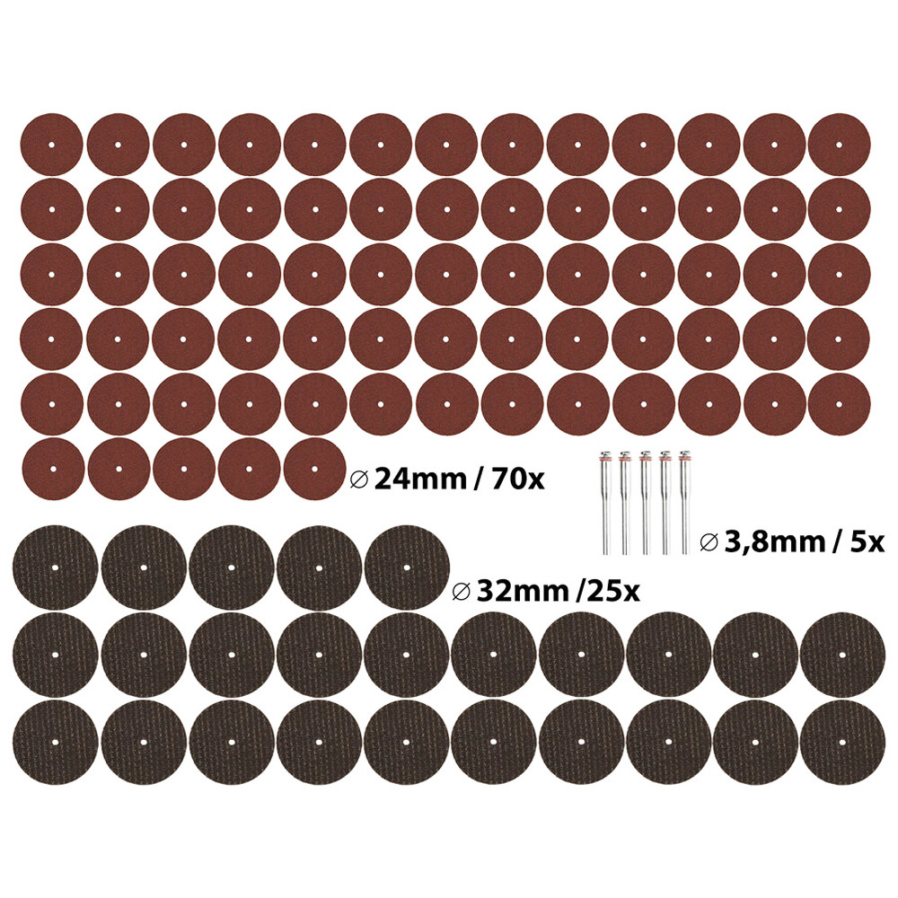 vágókorong: ⌀24mm - 70db, ⌀32mm - 25db, fém szár 5db, ⌀3,2mm