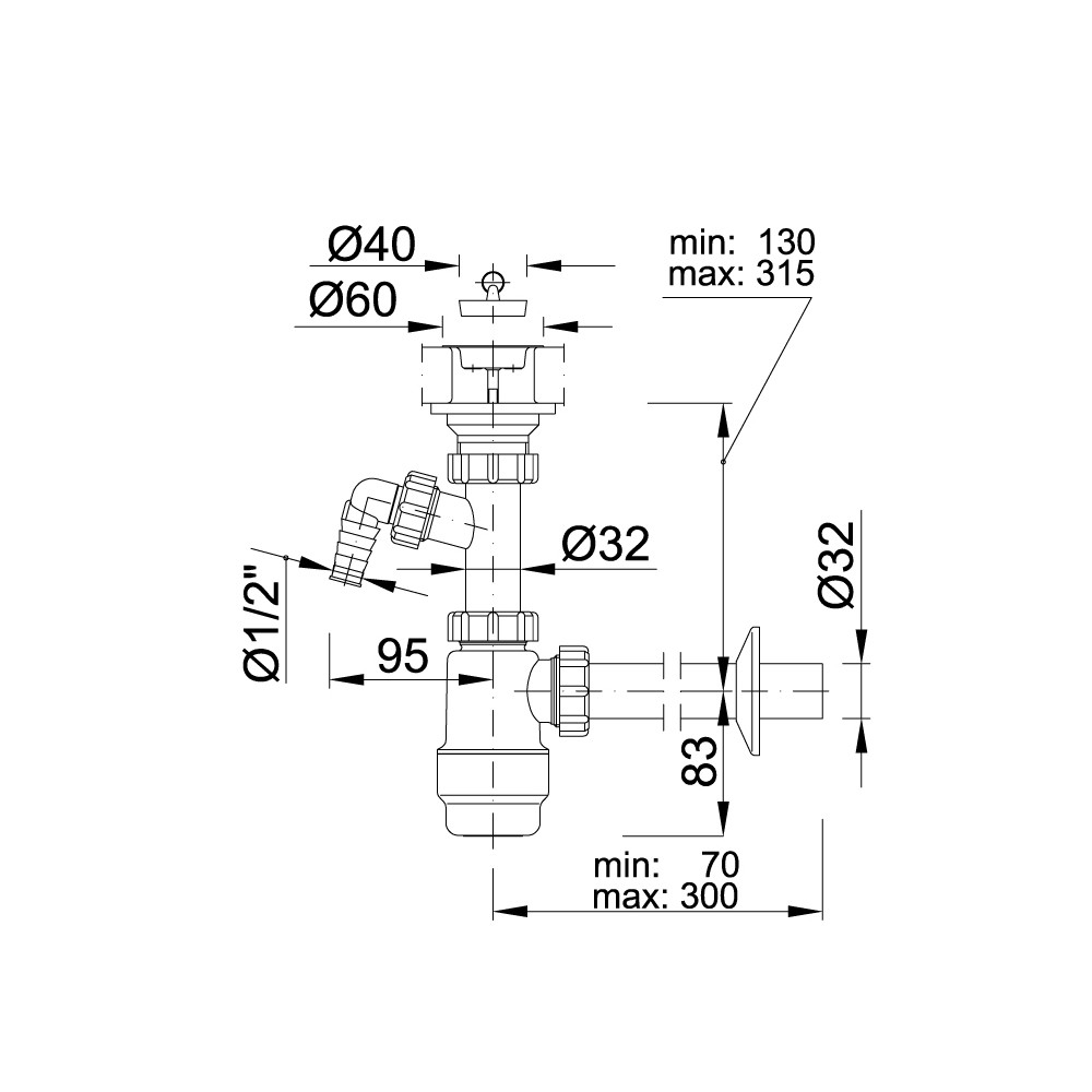 Mosdószifon, leeresztőszeleppel, mosógép csatlakozóval STY-533-1