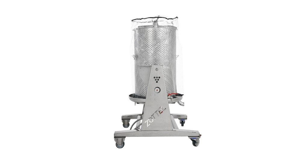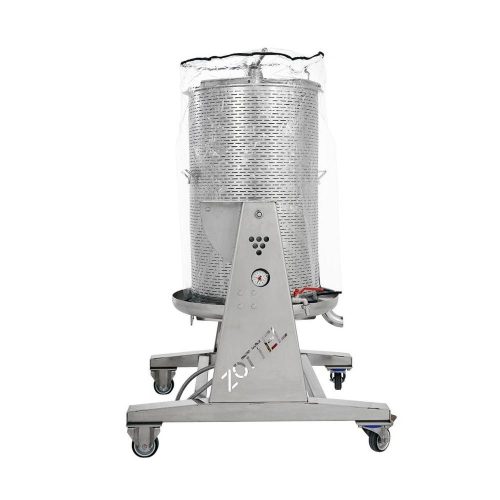 A prés négy guruló lábra van szerelve, ezáltal rendkívül könnyen mozgatható. Perforált, rozsdamentes préskosara van, valamint egy természetes gumiból készült membrán.