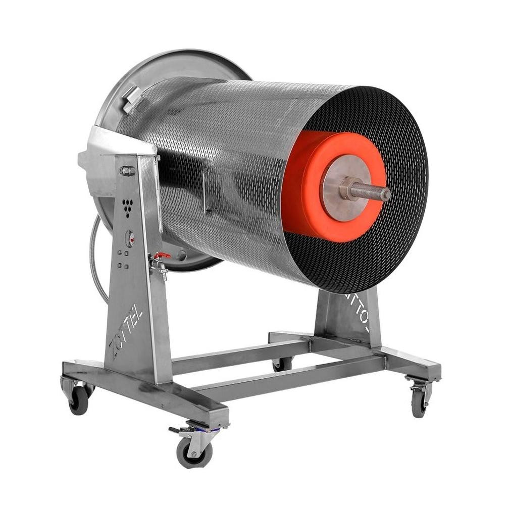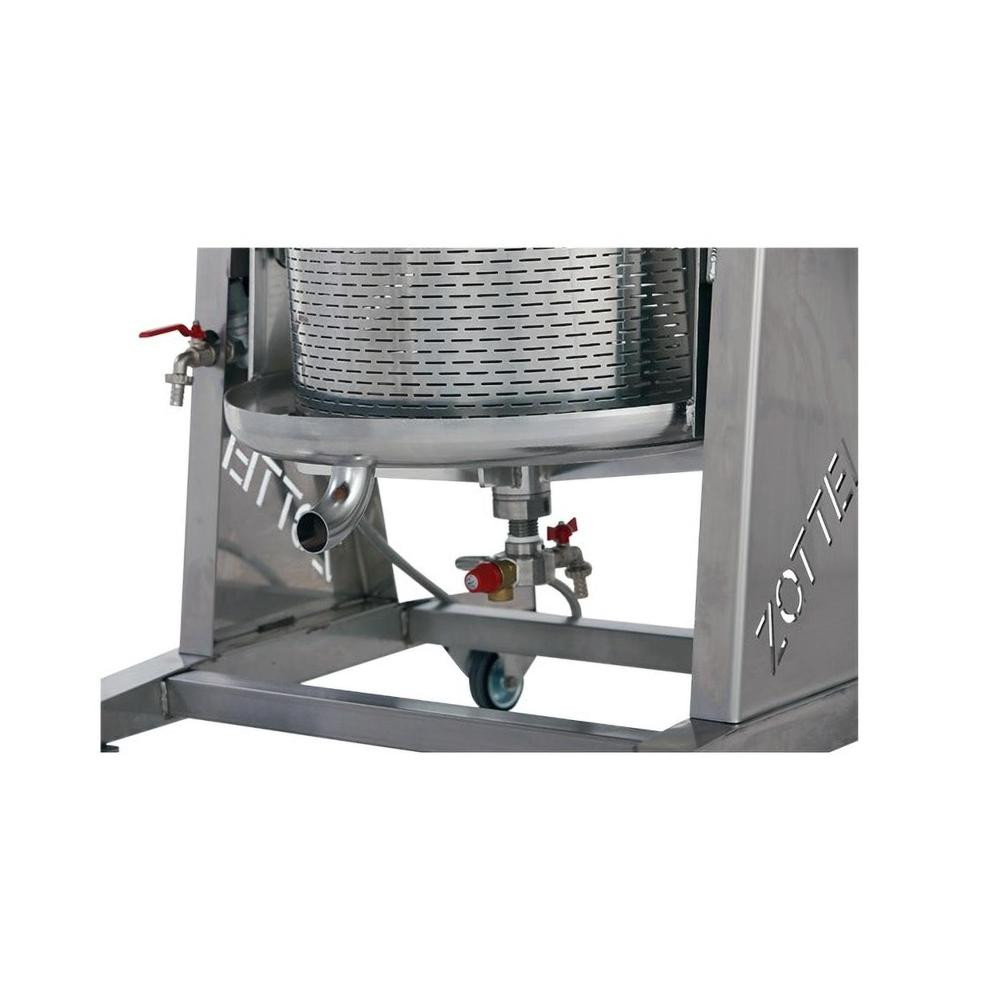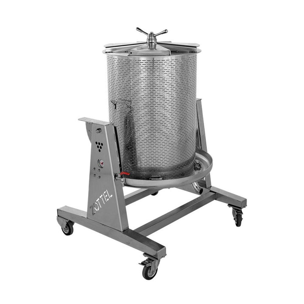 A prés négy guruló lábra van szerelve, ezáltal rendkívül könnyen mozgatható. Perforált, rozsdamentes préskosara van, valamint egy természetes gumiból készült membrán.