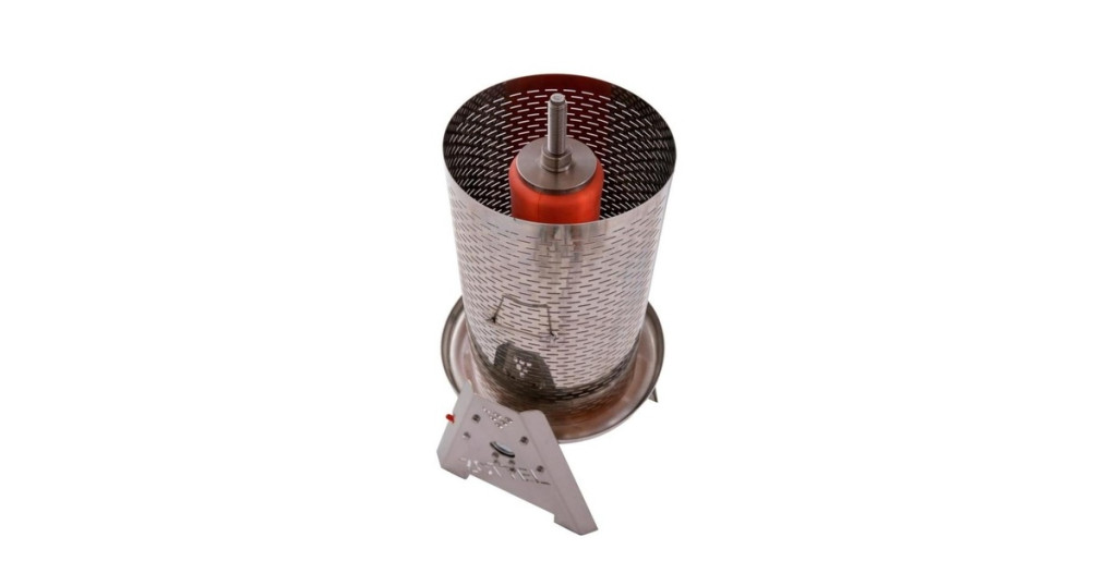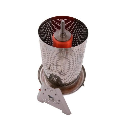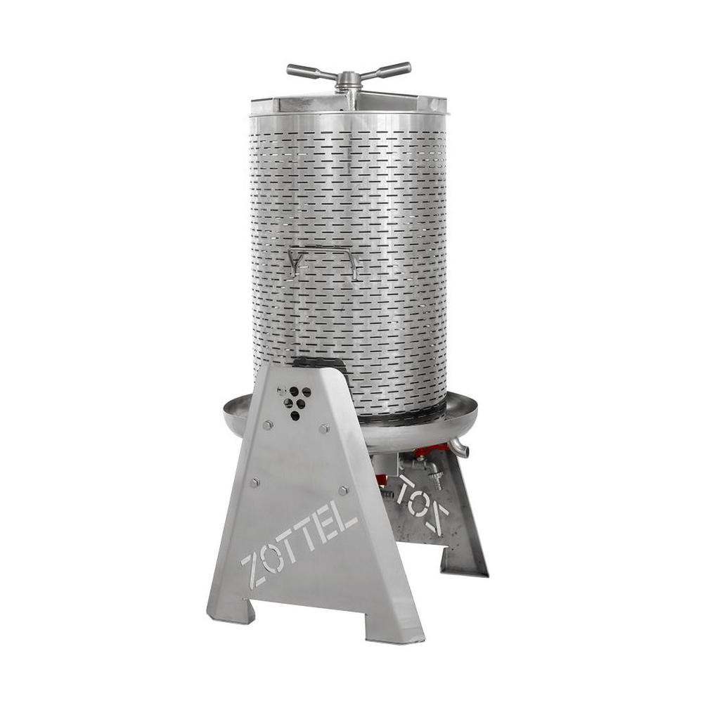 A prés négy lábra van szerelve, könnyen mozgatható. Perforált, rozsdamentes préskosara van, valamint egy természetes gumiból készült membrán.