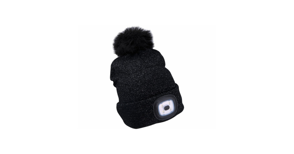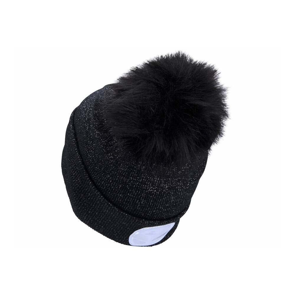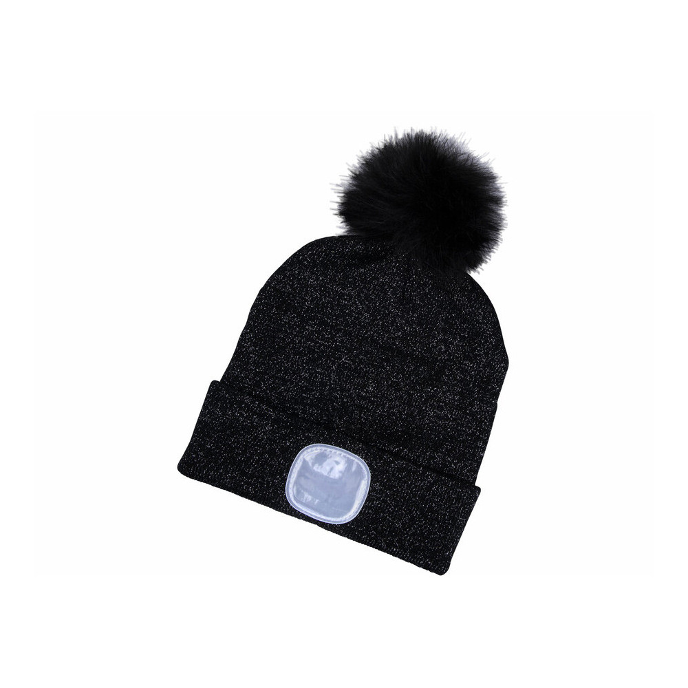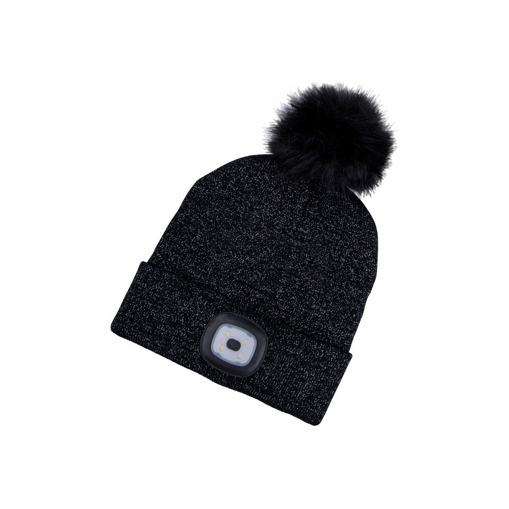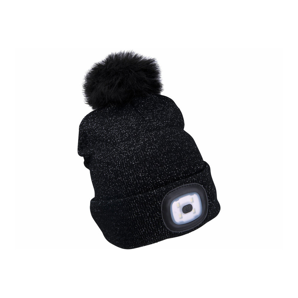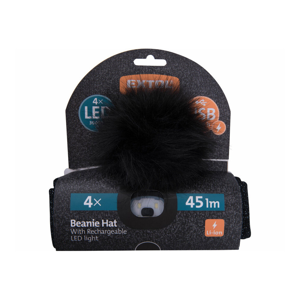 Sapka LED lámpával fekete, pomponnal, kötött, Extol Light