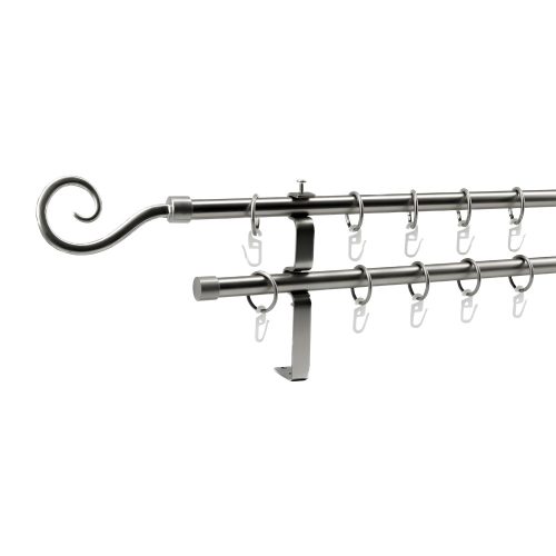 A szett tartalma: rúd, végzáró, lapostartó, karikák ráncszedőkampóval, szereléshez szükséges csavarok és tiplik.