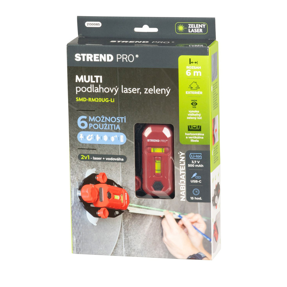 Az SMD-RM20UG-Li padlólézer, egy professzionális lézer zöld sugárral, amely még gyenge fényviszonyok között is kiváló láthatóságot biztosít. A beépített Li-ion akkumulátornak köszönhetően hosszú élettartamot biztosít egyetlen feltöltéssel és kényelmes használatot az állandó akkumulátorcsere nélkül.