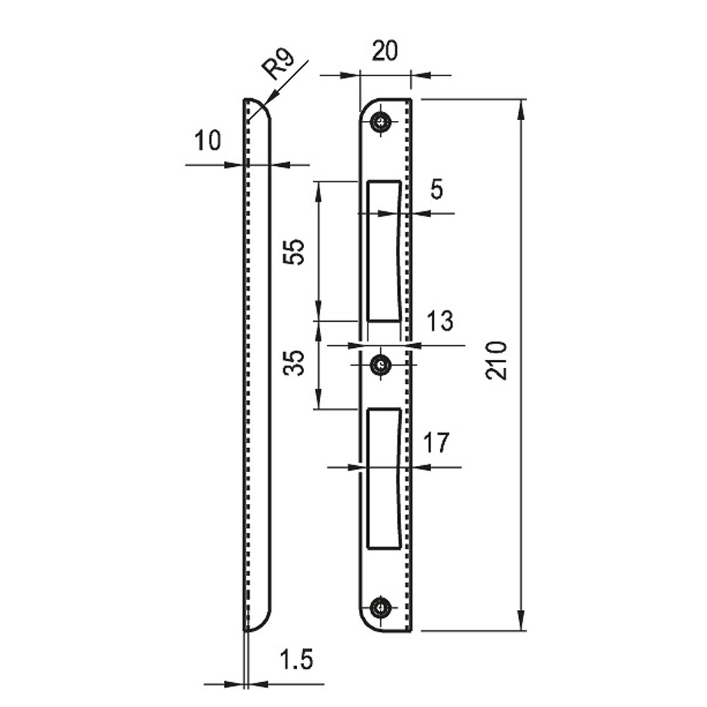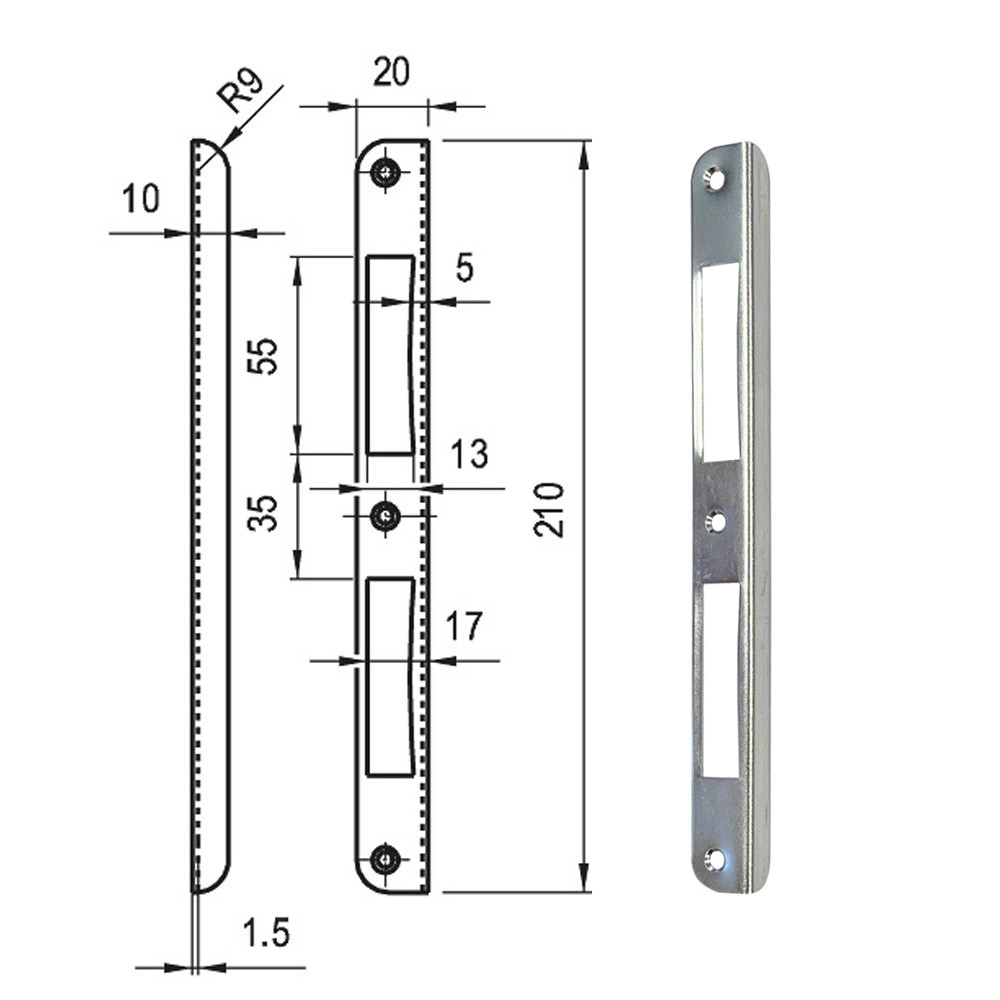Zárólemez midi, hajlított, kerekített visszacsípett